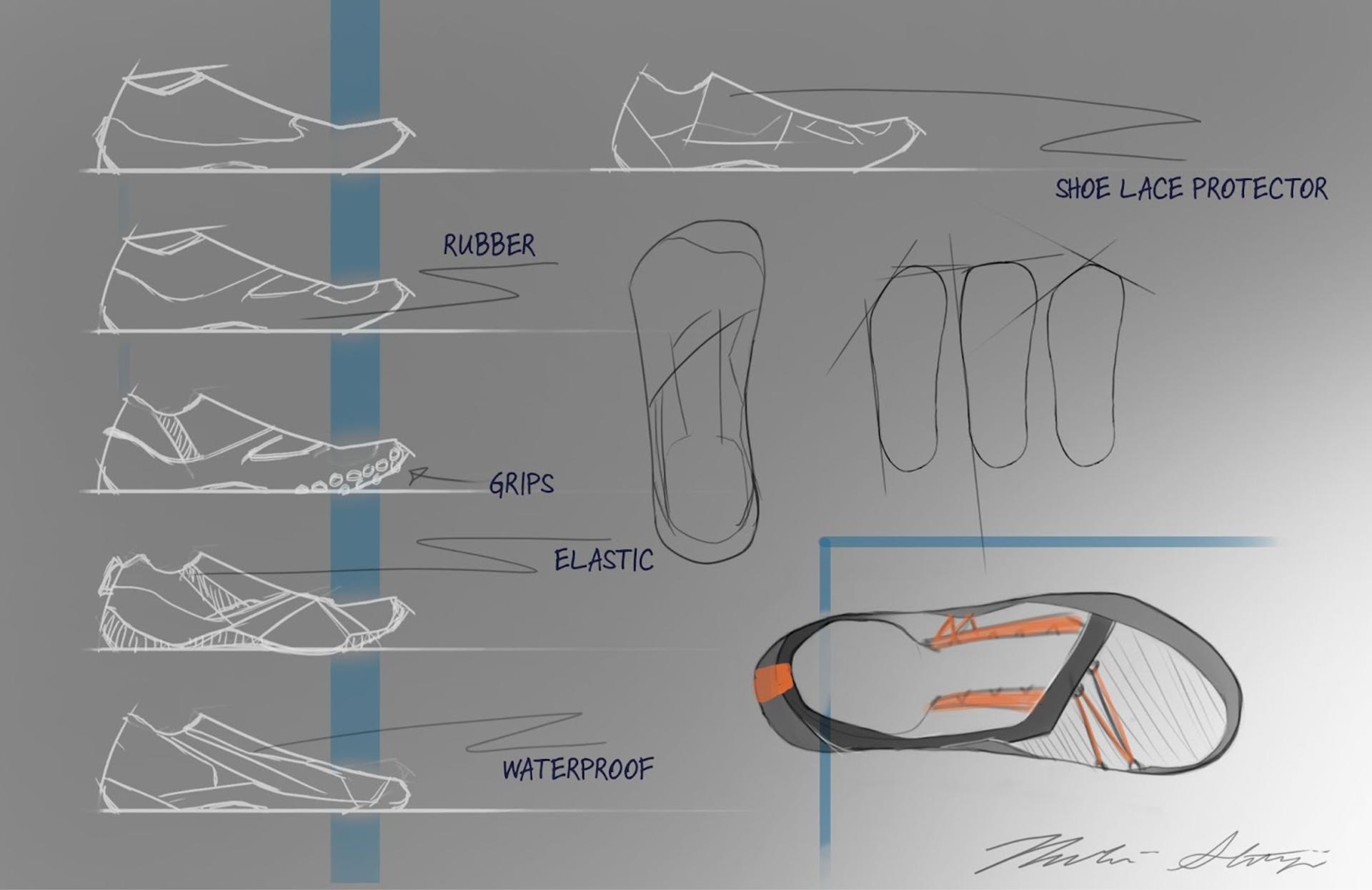 How might we design a trail running shoe that is minimalistic while at the same time protecting against mud and water